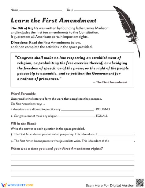 First Amendment Worksheet. Your students will love learning about the. Worksheet (download), one per student or small group;