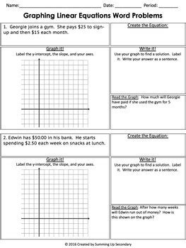 Graphing worksheet students practice solving word problems by writing and solving systems of equations using graphing in. This worksheet includes the task of completing a function table from a linear equation and graphing the. Graphing & writing linear equations word.